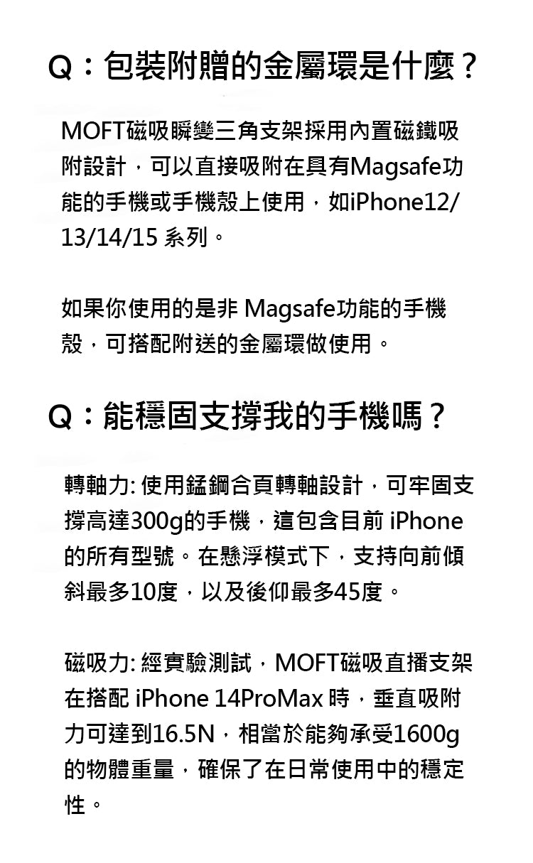 *附贈 MOFT 引磁環,非 MagSafe™ 手機可將引磁環貼在手機上確保瞬變三角支架磁吸穩固